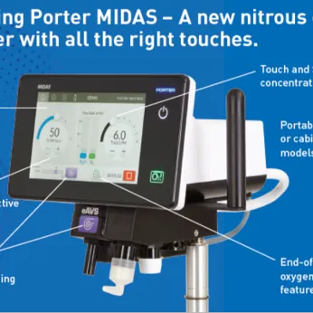 Porter Instrument has been manufacturing nitrous oxide and oxygen delivery systems for over 55 years to help manage patient pain and anxiety during medical and dental procedures. Medical markets include labor and delivery, emergency medicine and pediatrics in the hospital and for in-office procedures in medical aesthetics, gynecology and urology. Nitrous oxide and oxygen offers a simple way to provide minimal sedation with rapid onset and offset rather than traditional pain management medications that have longer side effects. Porter is actively looking for international distribution partners in these medical markets. We are the only company that manufactures both demand flow and continuous flow systems to be able to offer the right solution for each customer. Porter also offers a full line of dental flowmeters. Stop by the Porter booth to see the latest devices including the Nitronox Plus demand flow system and the Midas full digital touchscreen continuous flow device.