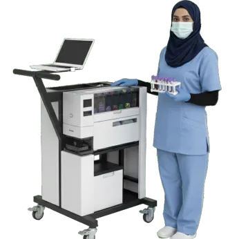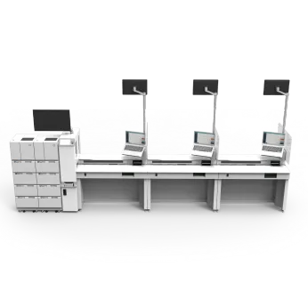 We automate the process from patient registration at reception, phlebotomy tube selection as per test information in the LIS/HIS, label printing, tube labelling, tube delivery to phlebotomists and specimen transportation and sorting after blood collection. The transported specimen will be delivered to the lab receiving area or into a Bulk BIM module where the analytical automation begins.