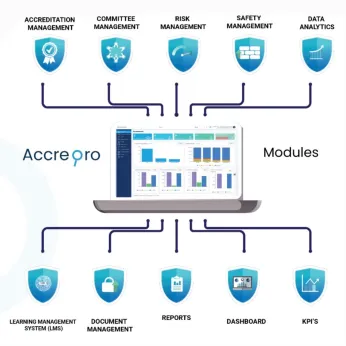 AccrePro enables hospitals and healthcare systems to manage accreditation, documents, audits, risk, patient safety, and performance metrics through one connected platform, shifting compliance from manual, survey-driven processes to continuous, data-driven readiness.